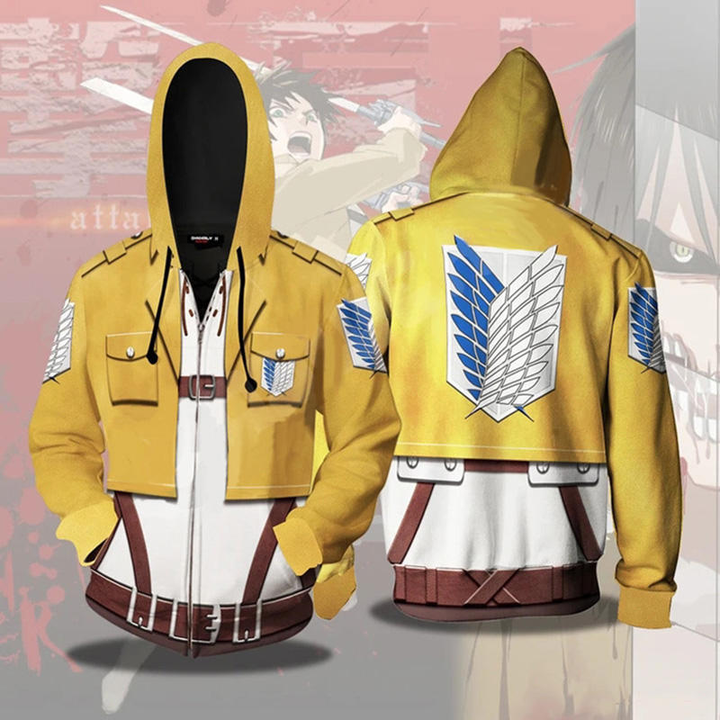 เสื้อแจ็คเก็ตซิปพิมพ์ลายอนิเมะสองด้าน ขายส่ง เสื้อฮู้ดซิปเต็มตัวลาย Attack on Titan ผ้าโพลีเอสเตอร์ สำหรับงานซับลิเมชั่น