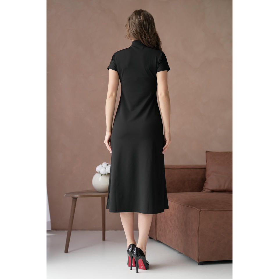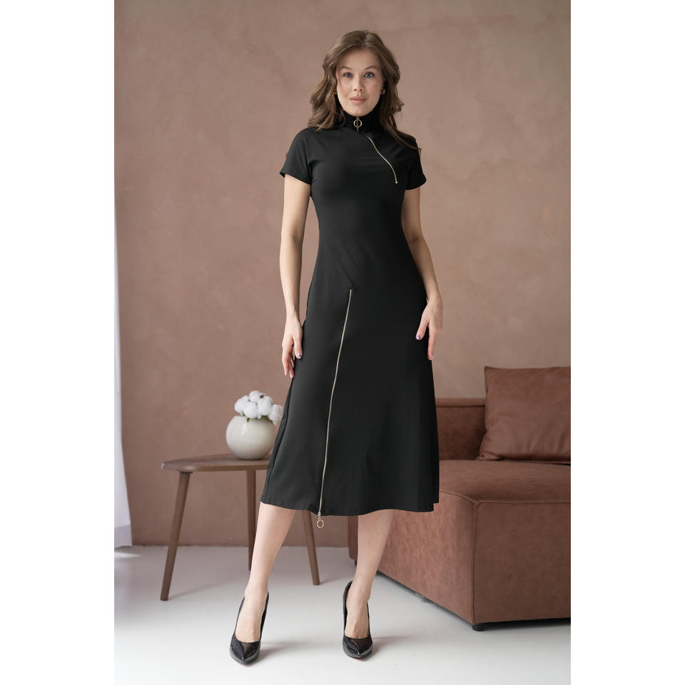 เดรสยาวปานกลางแขนสั้นคอสูงแต่งซิป