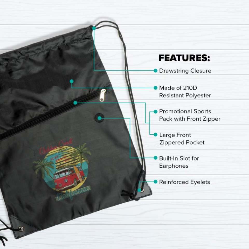 กระเป๋าซิปแบบมีเชือกผูก โพลีเอสเตอร์ สกรีนโลโก้ตามสั่ง กระเป๋าเป้สะพายหลัง พิมพ์ลายแบบซับลิเมชั่น กระเป๋าแบบมีเชือกผูกสำหรับโปรโมชั่น