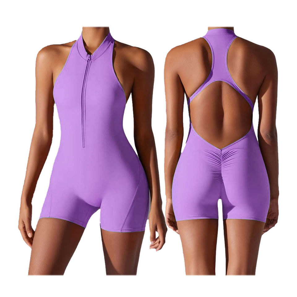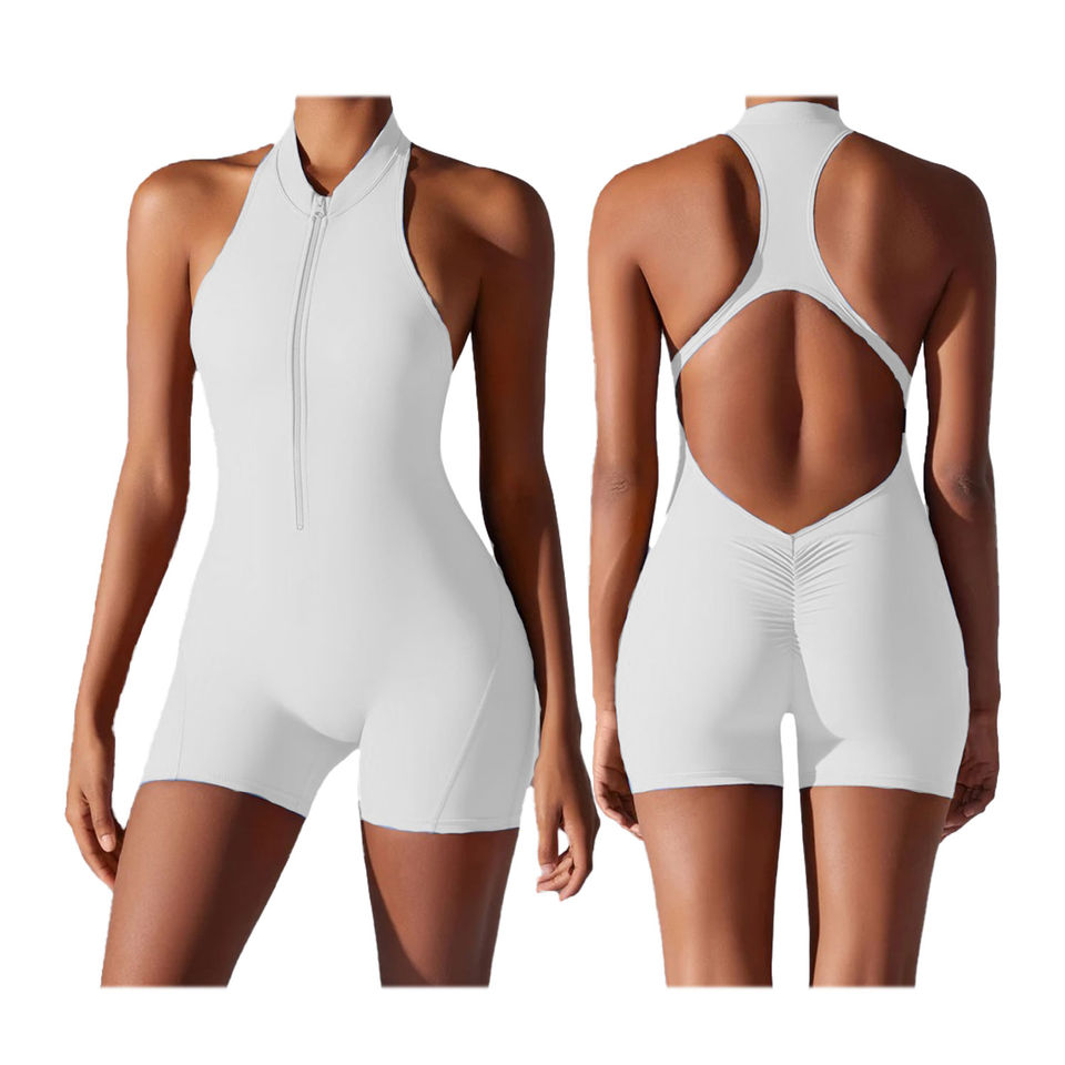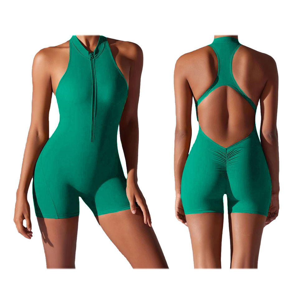 ชุดจั๊มสูทโยคะแบบมีซิป สำหรับฟิตเนส พิลาทิส ออกกำลังกาย เสื้อผ้ากีฬาผู้หญิง ลายปักเหนือเข่า ราคาถูก รับผลิตแบบ OEM