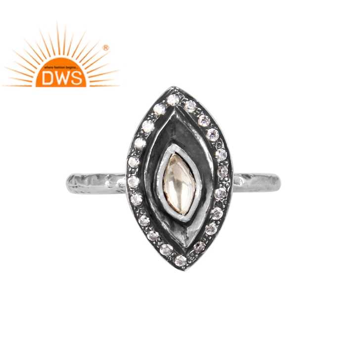 แหวนพลอยควอตซ์คริสตัลเพทายขายส่ง925เงินสเตอร์ลิงทันสมัยได้รับการรับรองจาก GIA ดีไซน์ออกซิไดซ์สีเงิน