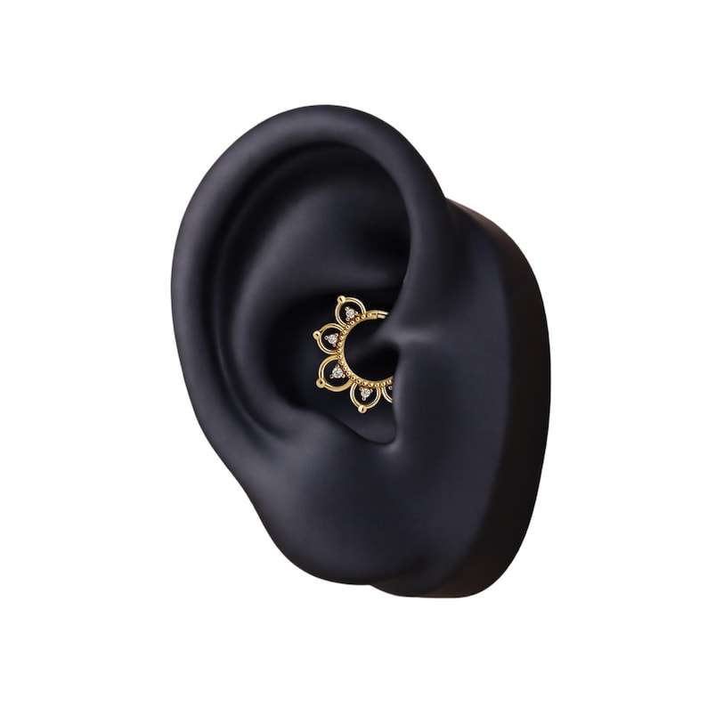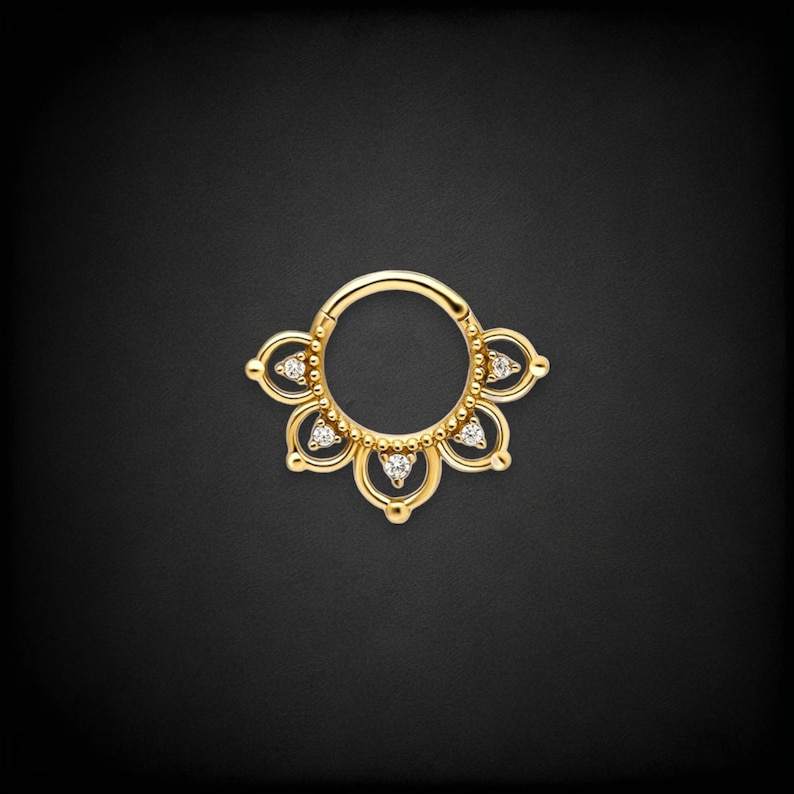 ต่างหูห่วงเซอร์คอน เงินแท้ 925 ชุบทอง แบบมีบานพับ สำหรับเจาะ septum, daith, helix
