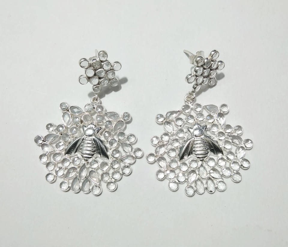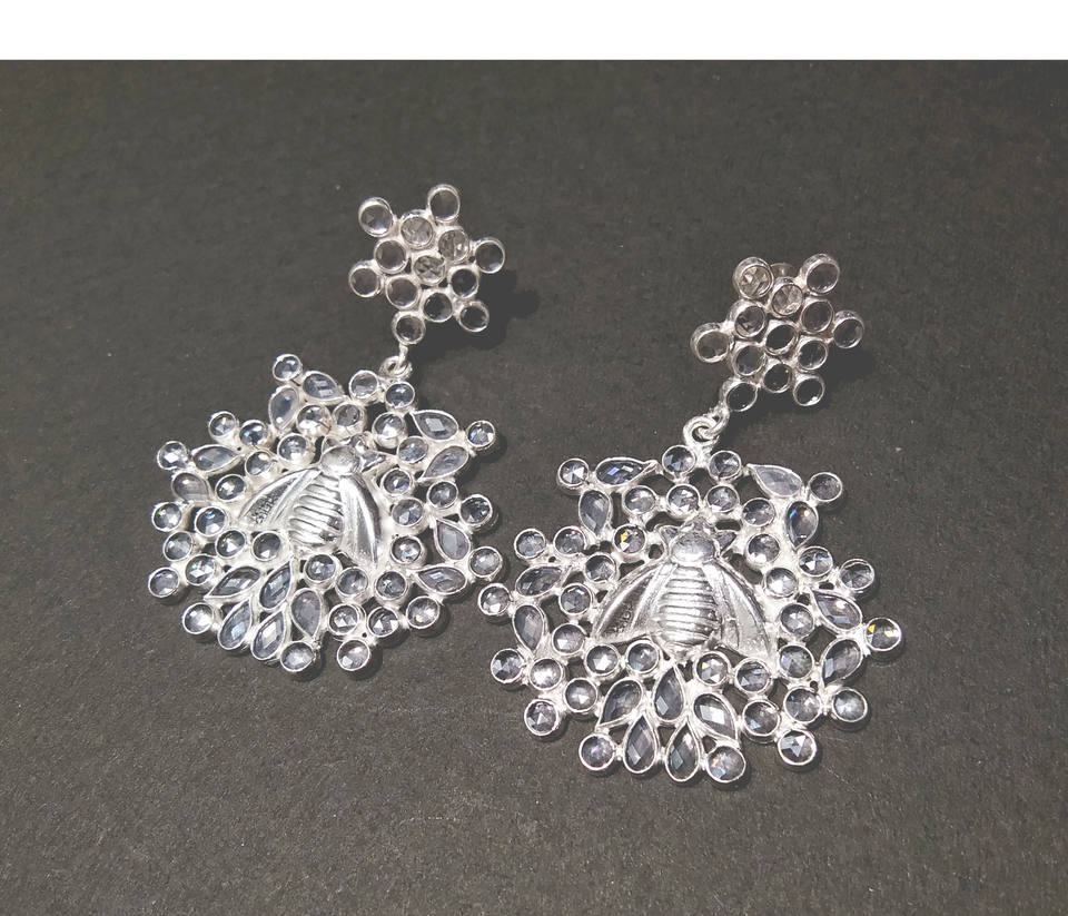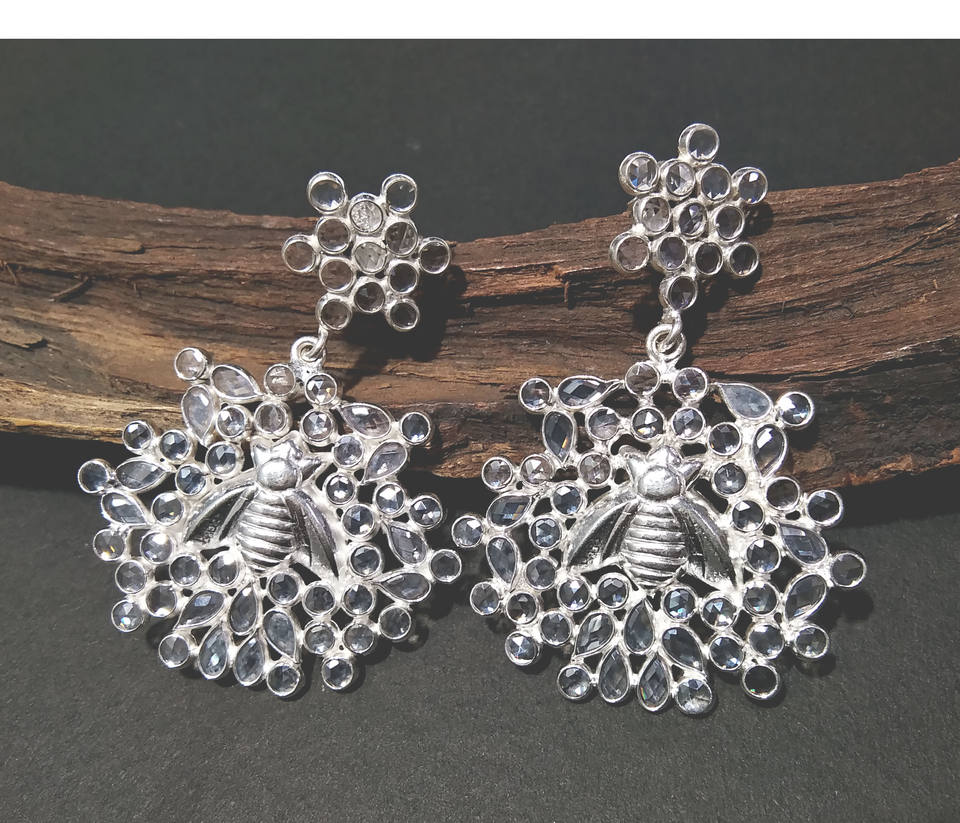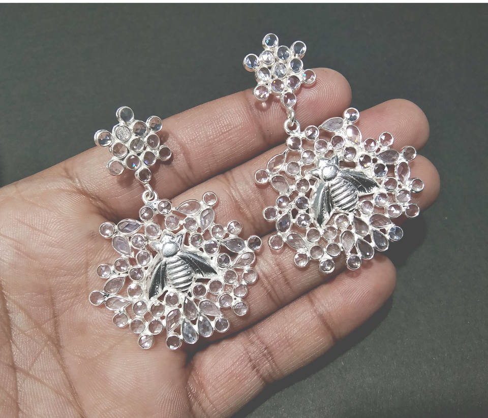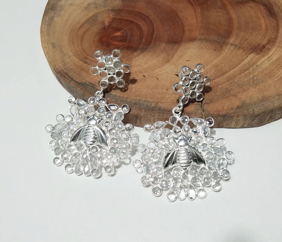 ต่างหูเงินแท้ 925 ดีไซน์ผึ้งประดับเพชรซิร์คอน สำหรับผู้หญิง-ของขวัญงานปาร์ตี้ เครื่องประดับสำหรับงานหมั้น