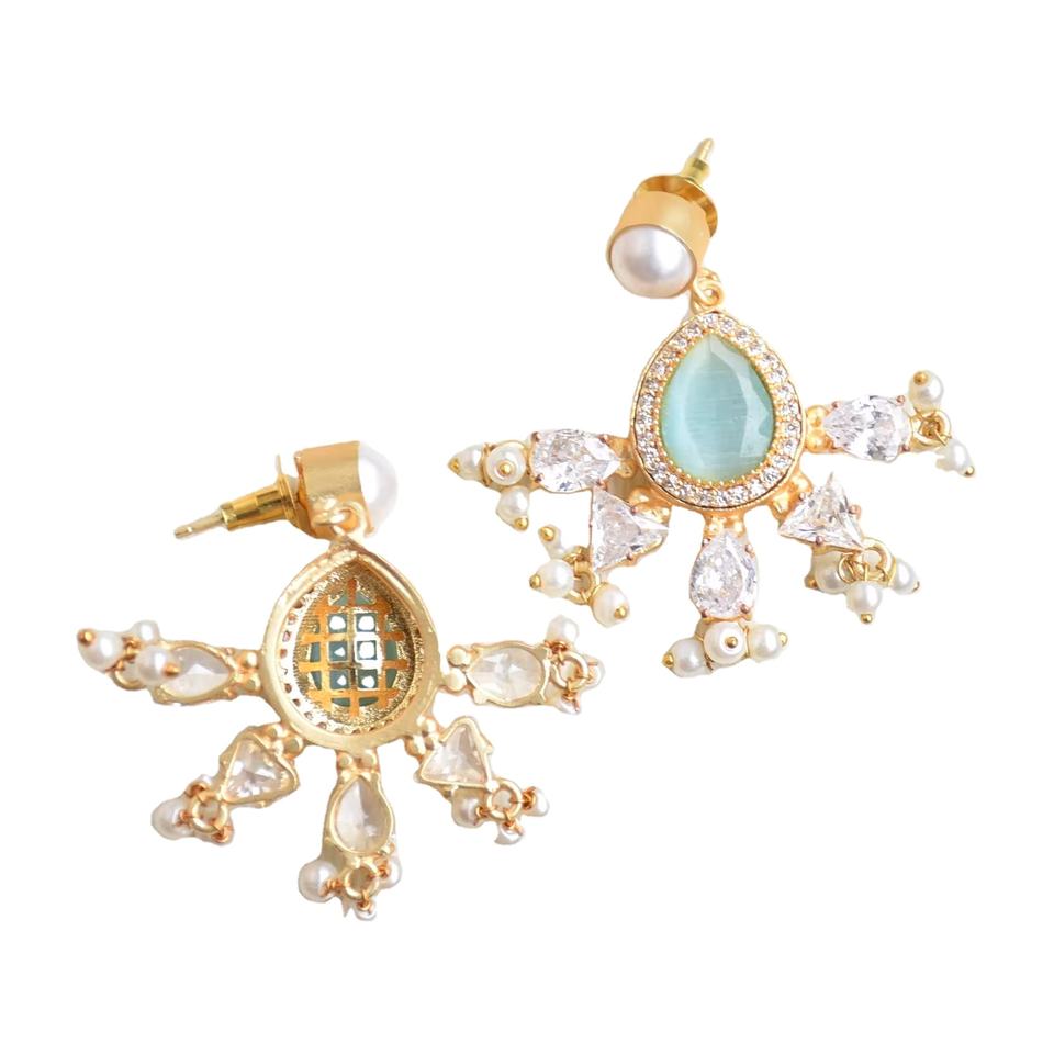 ต่างหูทองเหลืองธรรมชาติ ประดับเพชรซิคอนคุณภาพสูง หินกึ่งมีค่าธรรมชาติ ผิวทองเหลืองโบราณ ปลอดภัยต่อผิวแพ้ง่าย สวมใส่สบาย