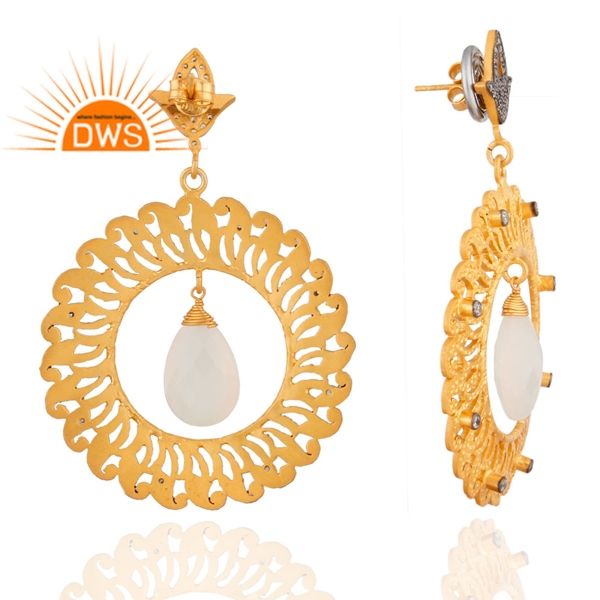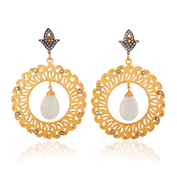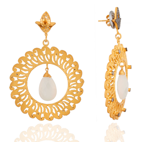 ต่างหูเพชรพลอยสีขาวเซอร์คอนทรงกลม ดีไซน์เก๋ ตัวเรือนเงินชุบทอง จากผู้ผลิตเครื่องประดับ