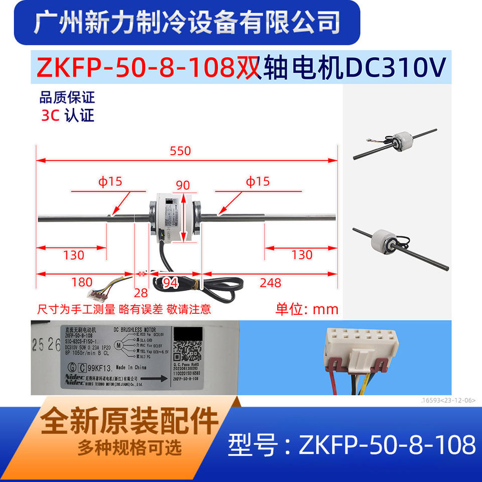 Zkfp 50 8 108 มอเตอร์ดีซีไร้แปรงถ่าน 310V สำหรับเครื่องปรับอากาศส่วนกลางพัดลมเปลี่ยนอุปกรณ์เครื่องกล