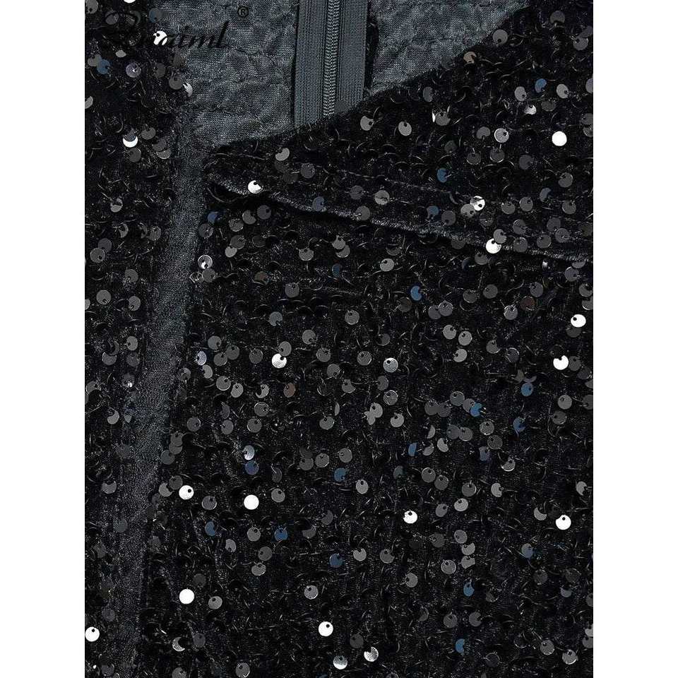 ชุดเดรสปาร์ตี้ประดับด้วยเลื่อมผ้ากํามะหยี่เปลือยเรียงรายมินิเดรส-สีดํา
