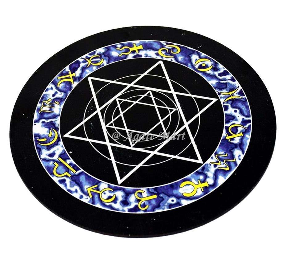 กระดานอาเกตสีดำสำหรับตกแต่งแท่นแท่นหินอาเกตเครื่องมือทำนายสลักสำหรับใช้ปฏิบัติวิญญาณลึกลับสำหรับตกแต่งแท่นบูชาแม่มด