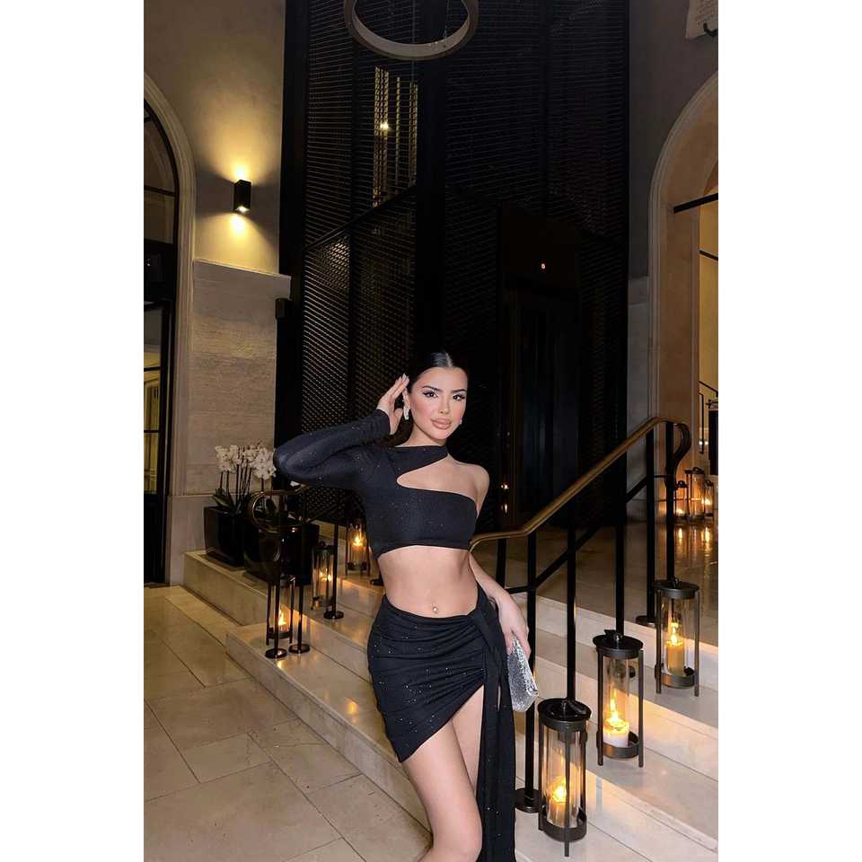 ชุดราตรีแขนเดียว Zoe พร้อมดีเทลหน้าต่างลายฉลุอย่างประณีต