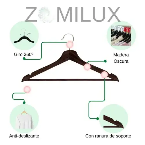 Zomilux 40 Mahogany Wood Hangers Non-Slip Modern Design for Office Supermarket Boutique Store Customizable Logo