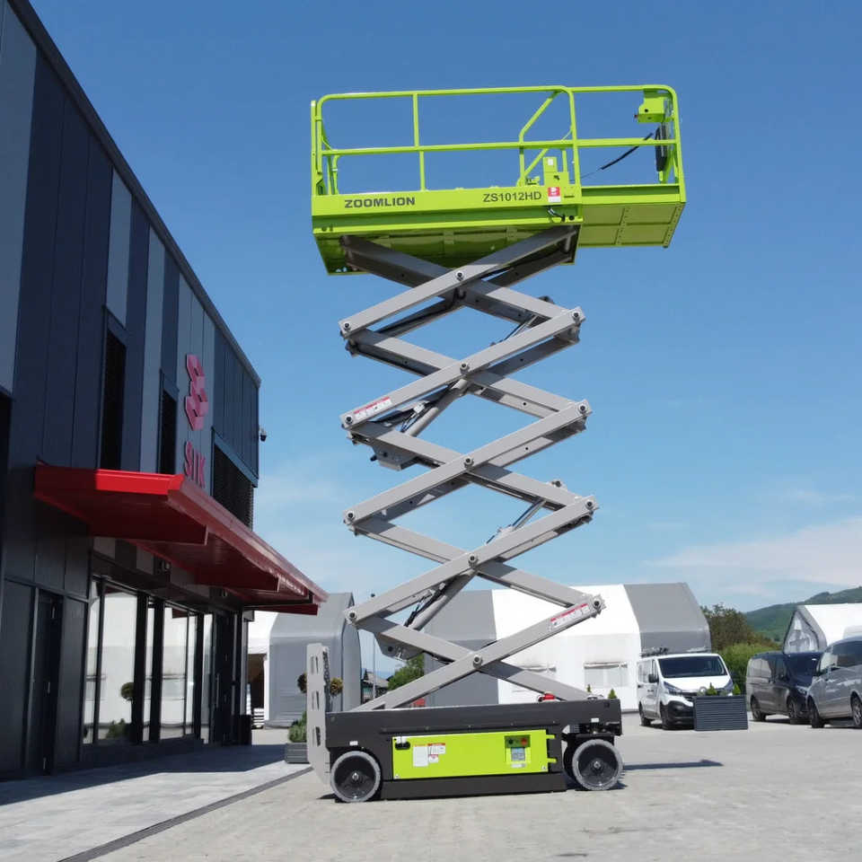 Zoomlion ลิฟต์ยกกรรไกร ZS1012HD กรรไกร12ม. ประสิทธิภาพสูง, แท่นยกแบตเตอรี่ลิเธียม