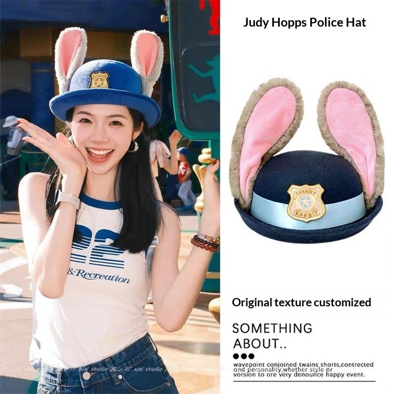 หมวกตำรวจจูดี้ แฮท แรบบิท โบว์เลอร์อะคริลิคสำหรับเด็กผู้ชาย ที่คาดผม อุปกรณ์ตกแต่งศีรษะ