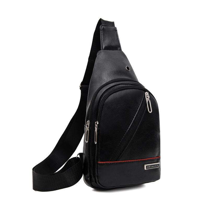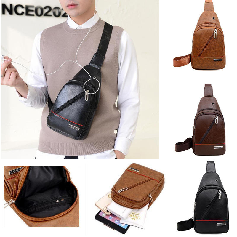 ซปิงพินกระเป๋าคาดหน้าอกผู้ชายหนัง PU กันน้ำกลางแจ้งลำลองกีฬากระเป๋าสะพายไหล่สีดำสีน้ำตาลสีกาแฟฤดูใบไม้ผลิ 2025