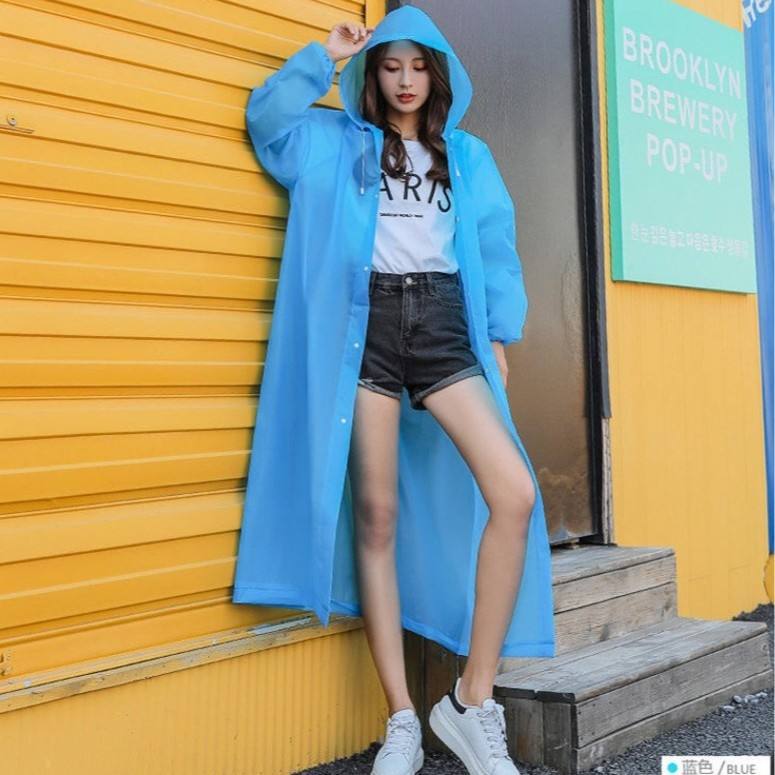 Ztc381 เสื้อกันฝนยาวสำหรับผู้หญิง สีฟ้า กันน้ำ แขนยาว ชุดลำลองสำหรับกิจกรรมกลางแจ้ง สำหรับผู้ใหญ่และเด็ก เสื้อคลุมสำหรับเดินทางท่องเที่ยว