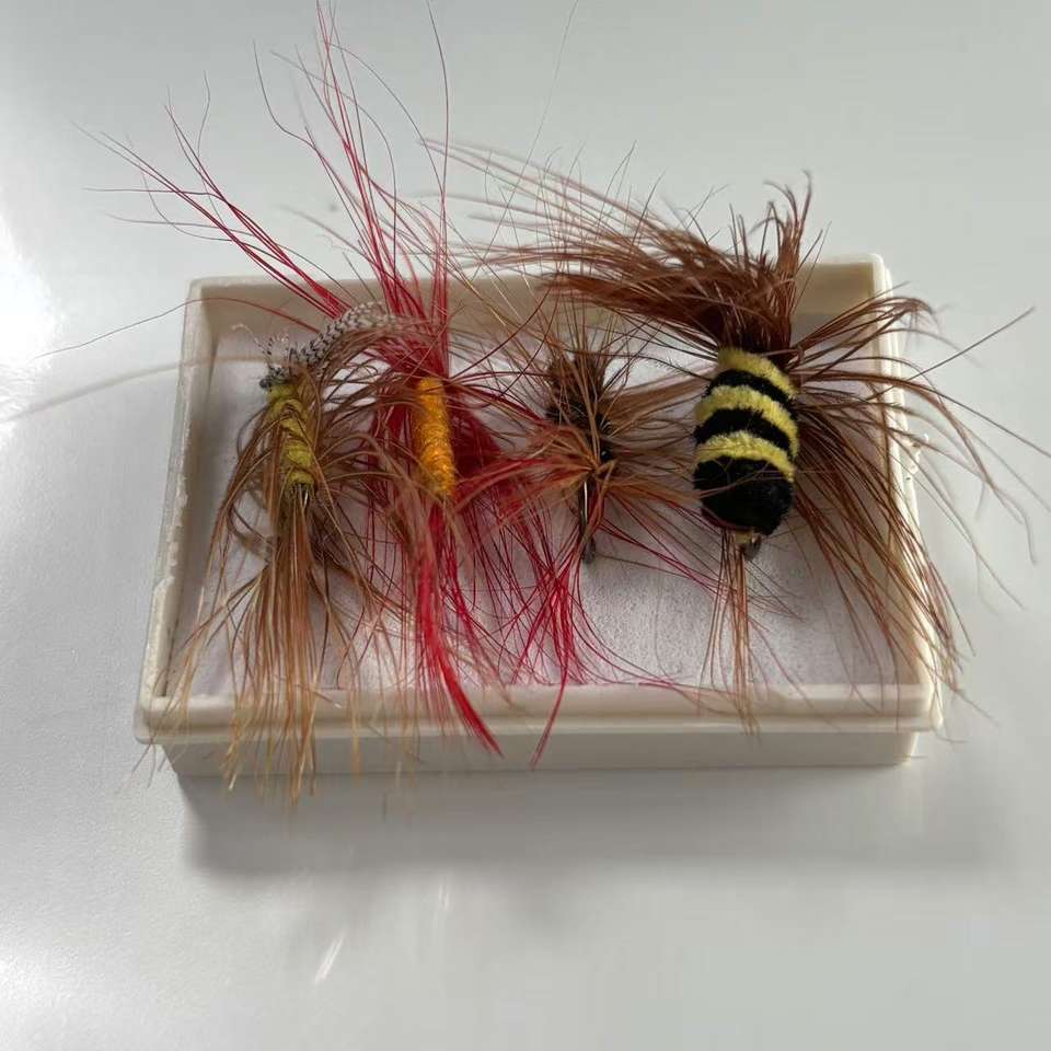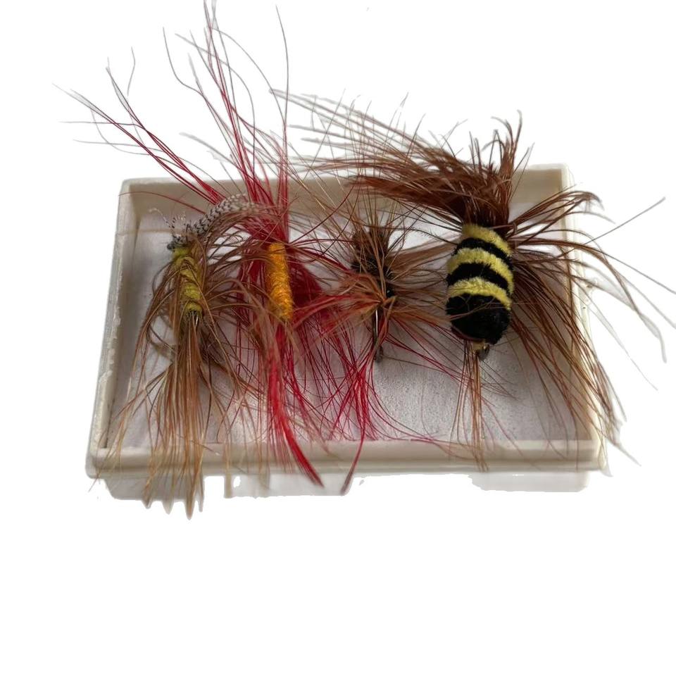 Ztc449 ชุดเบ็ดตกปลา 4 ตัวในกล่อง อุปกรณ์ตกปลาเทราต์ เหยื่อตกปลาแบบฟลาย สีสุ่ม ผลิตในจีน