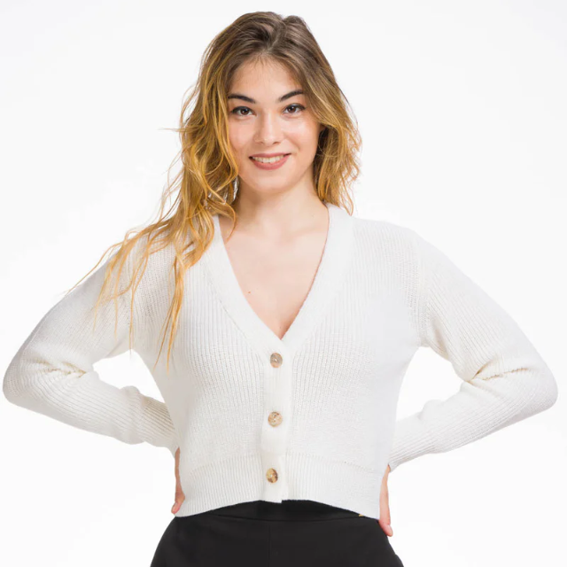 เสื้อสเวตเตอร์ลำลองสำหรับผู้หญิง Zuleika สำหรับฤดูหนาว ทำจากขนแกะเมอริโนบริสุทธิ์ คอวี คาร์ดิแกน สีและขนาดสามารถกำหนดเองได้ ถักแบบเรียบ