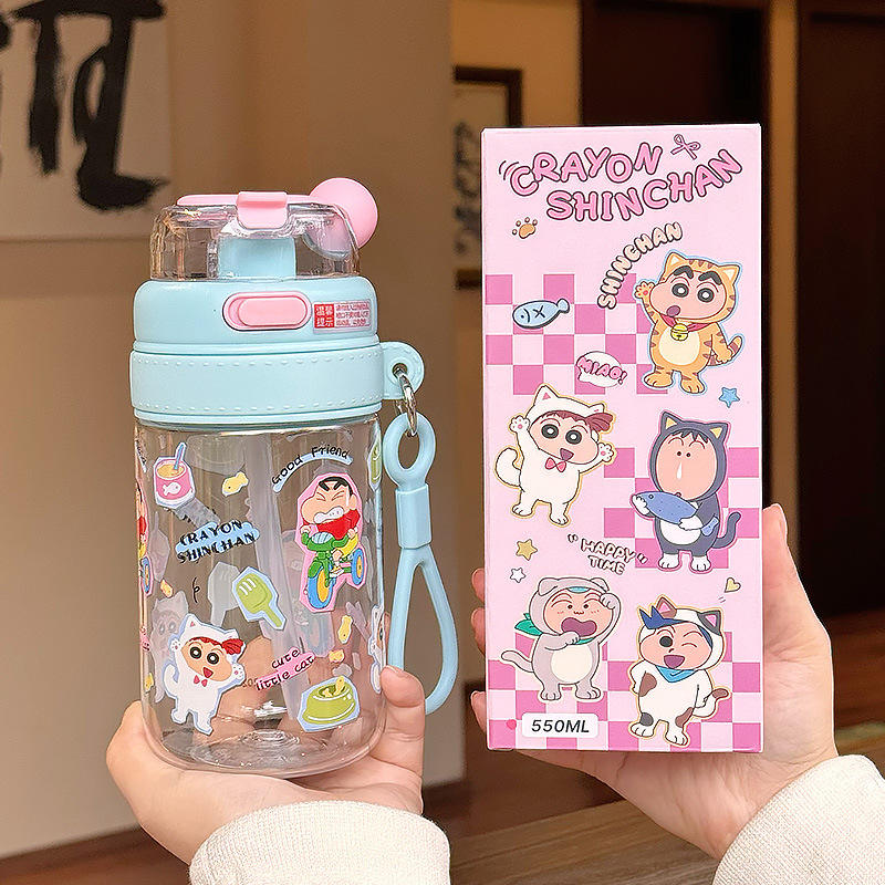 ขวดน้ำ Zuo Mu Crayon Shin-chan Tritan แบบสองชั้น ปราศจากสาร BPA พร้อมสายสะพายสำหรับเด็กนักเรียน กลับไปโรงเรียน