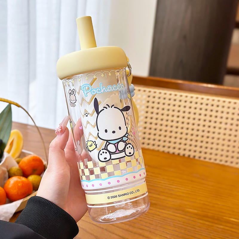ขวดน้ำพลาสติก Zuo Mu My Melody พร้อมหลอดและสายสะพาย ปลอดสาร BPA สำหรับเด็กผู้หญิง ของขวัญกลับไปโรงเรียน ปี 2026