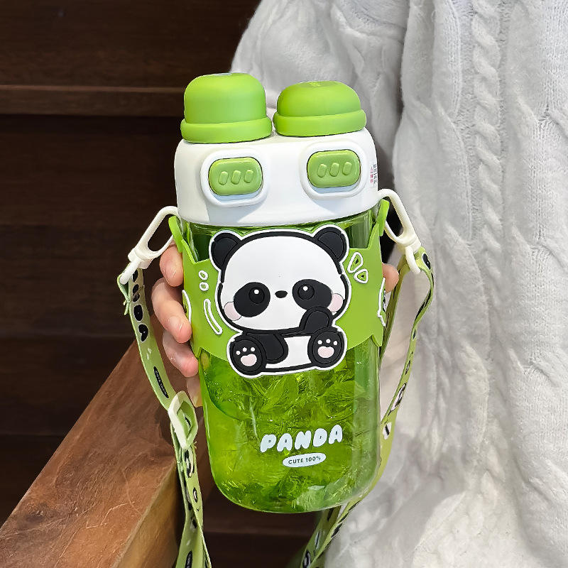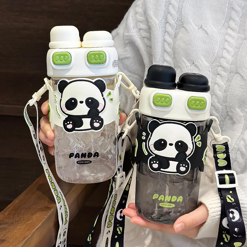 ขวดน้ำซัวมู่แพนด้า 600 มล. ปราศจากสาร BPA แก้วน้ำพกพาสำหรับเด็กนักเรียนของขวัญกลับไปโรงเรียน