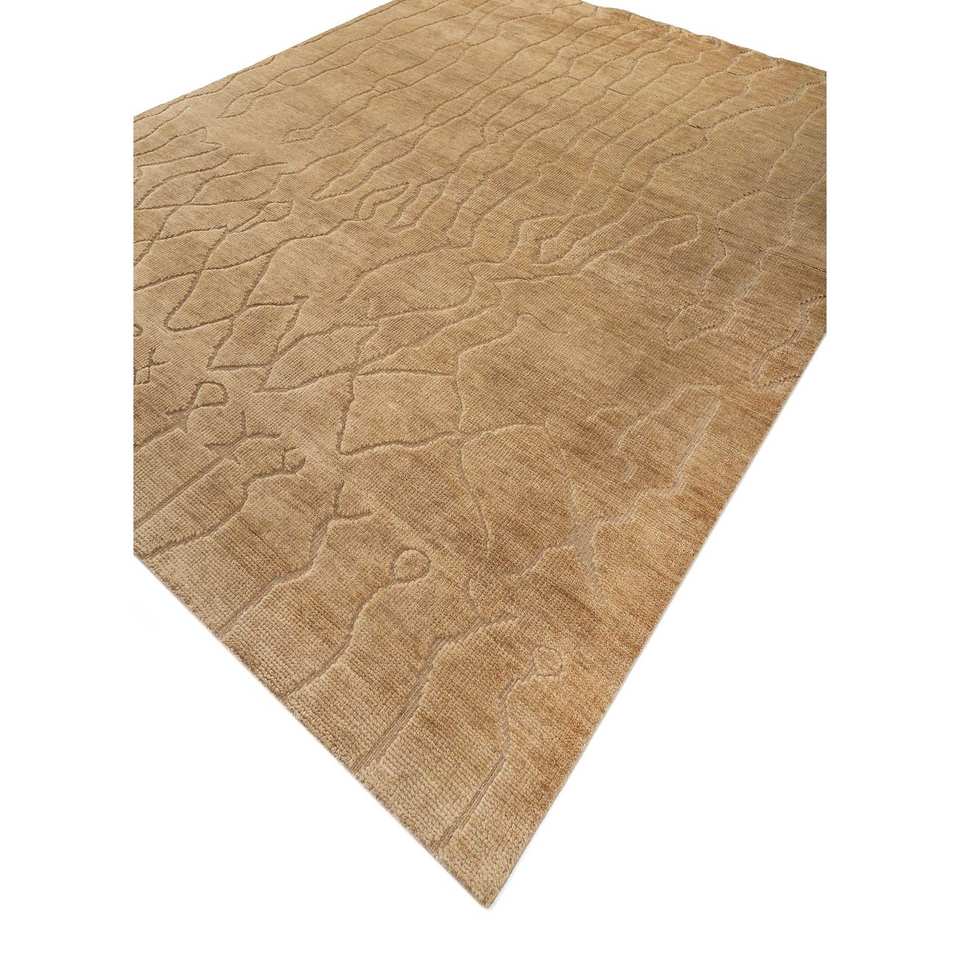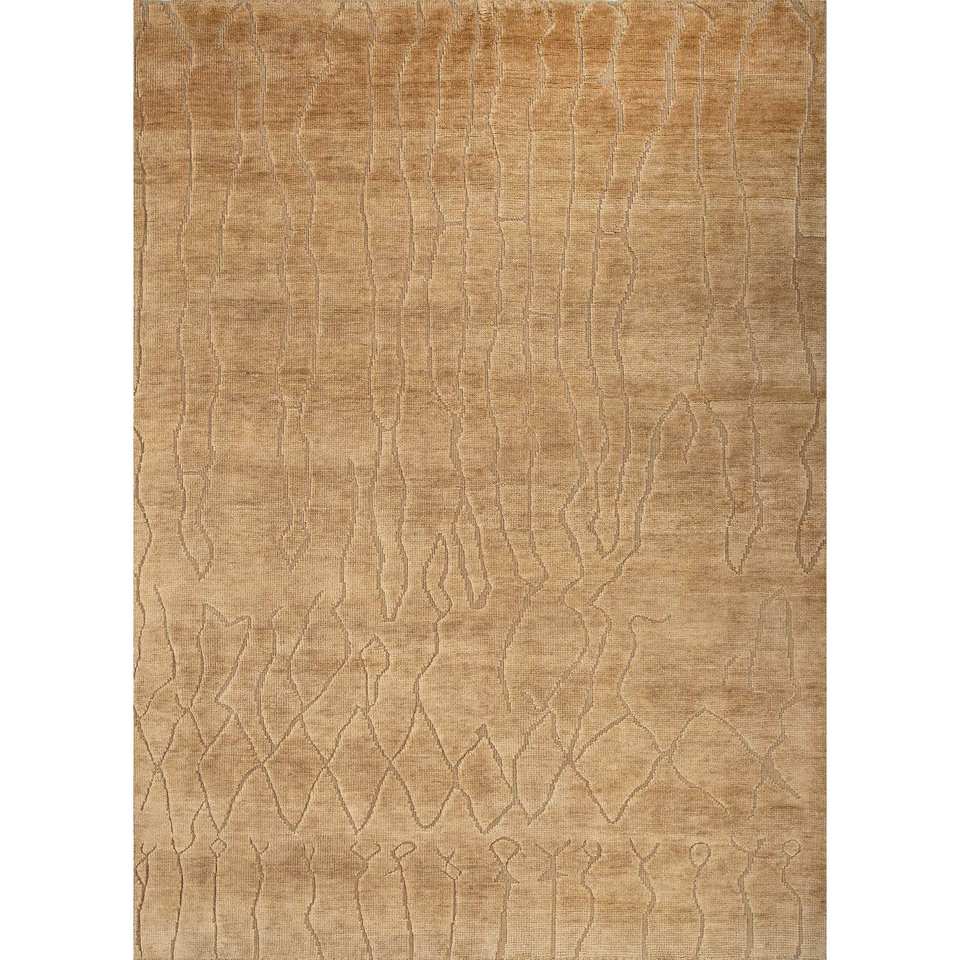 พรมขนสัตว์ถักมือสีเบจและสีน้ำตาลลายนามธรรมสำหรับห้องนั่งเล่น ทางเข้าบ้าน และห้องนอน-PKWL-214