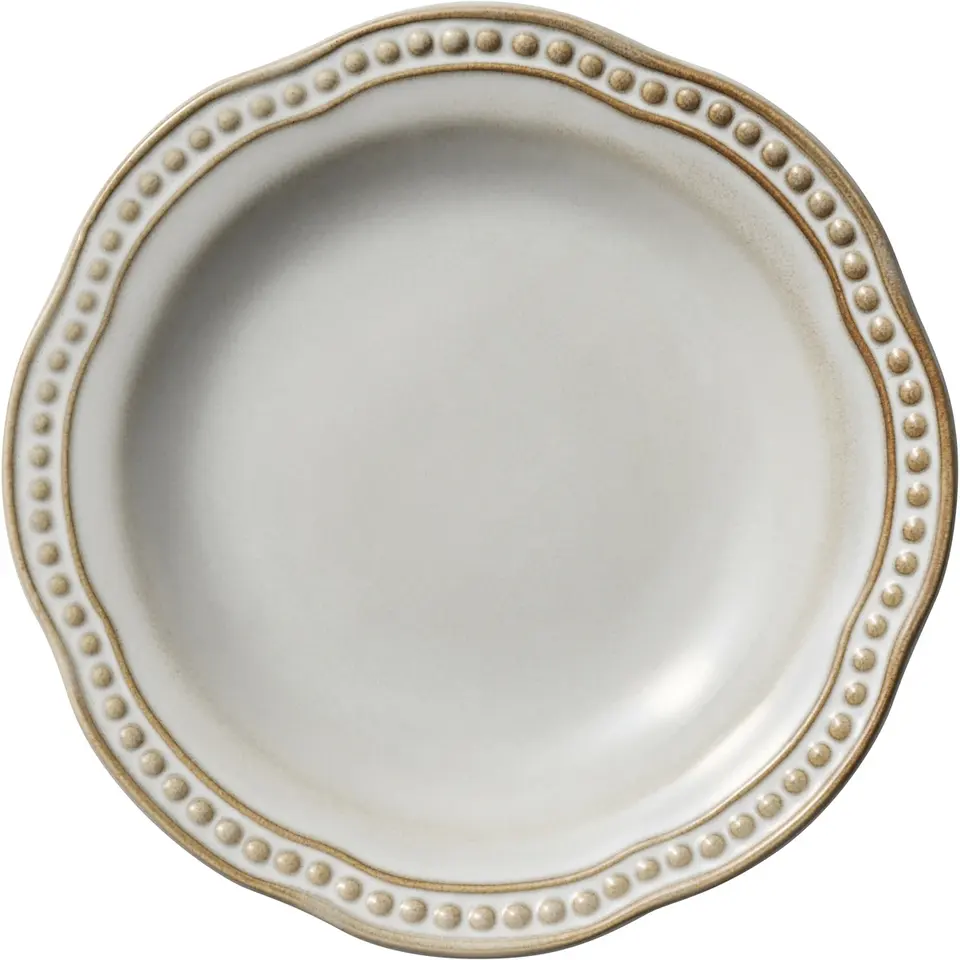 จานแบนขนาด10นิ้วเชิงพาณิชย์พร้อมเครื่องถ้วยชามทันสมัยหรูหราขอบทองสำหรับโรงแรมและงานแต่งงานสามารถปรับแต่งรูปแบบได้50ชิ้น