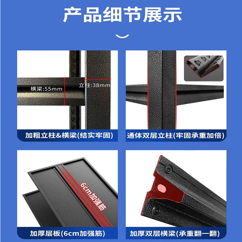 ชั้นวางของโลหะหลายชั้น Zwj Hj Cc 4 ชั้น รับน้ำหนักได้มาก ผลิตจากเหล็กแผ่นรีดเย็น สีดำ แบบตั้งพื้น สำหรับห้องใต้ดินหรือคลังสินค้า