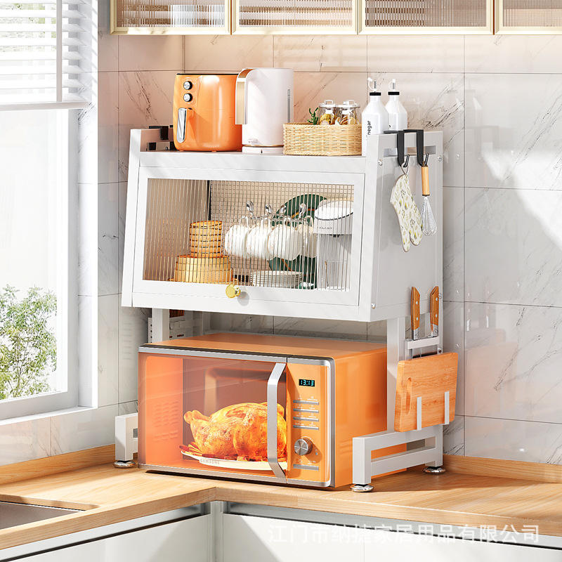 ตู้เก็บของในครัว Zwj ชั้นวางไมโครเวฟสองชั้นพร้อมประตู ดีไซน์เรียบง่าย ออแกไนเซอร์อเนกประสงค์สำหรับวางบนเคาน์เตอร์