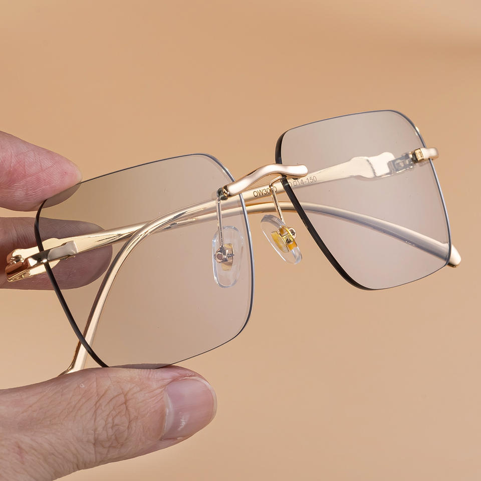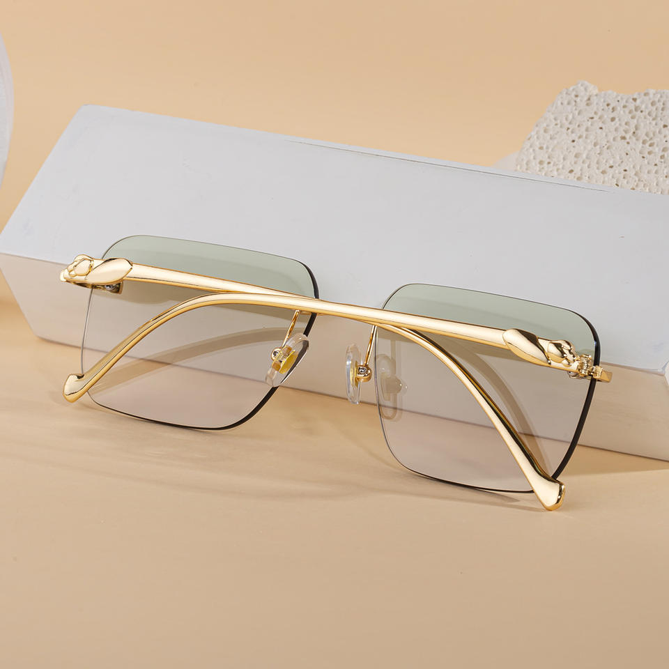 แว่นกันแดดเปลี่ยนสีอัตโนมัติทรงสี่เหลี่ยมไร้กรอบสำหรับผู้หญิง รุ่น Zx 3080 สีทองเทาอ่อน เปลี่ยนเป็นสีเทาเมื่อโดนแสง UV400 ระดับ 2 วัสดุพลาสติกและโลหะ
