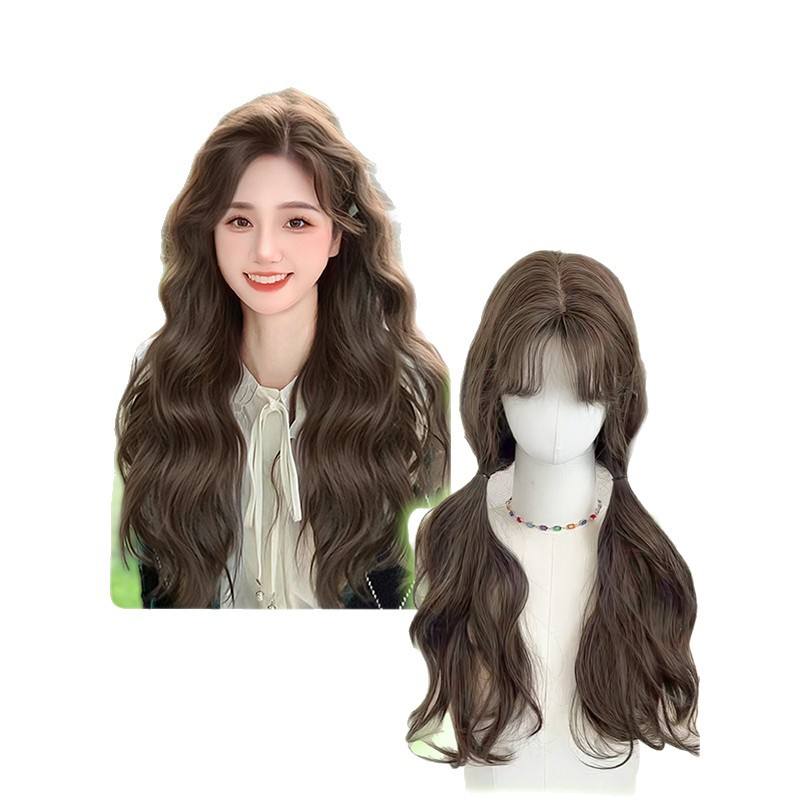 วิกผมยาวหยิกแบบมีหน้าม้า Zy08 ความหนาแน่น 130% เส้นผมทนความร้อนสูง คลุมทั้งศีรษะ สไตล์เกาหลี วิกผมแฟชั่นสำหรับผู้หญิง