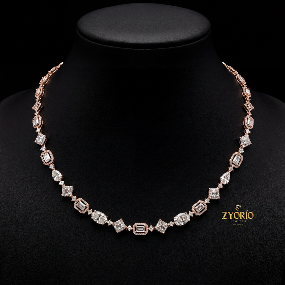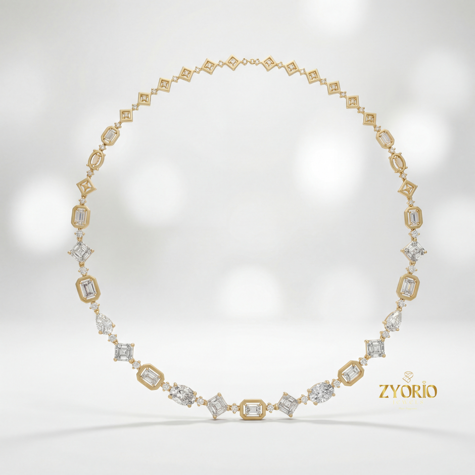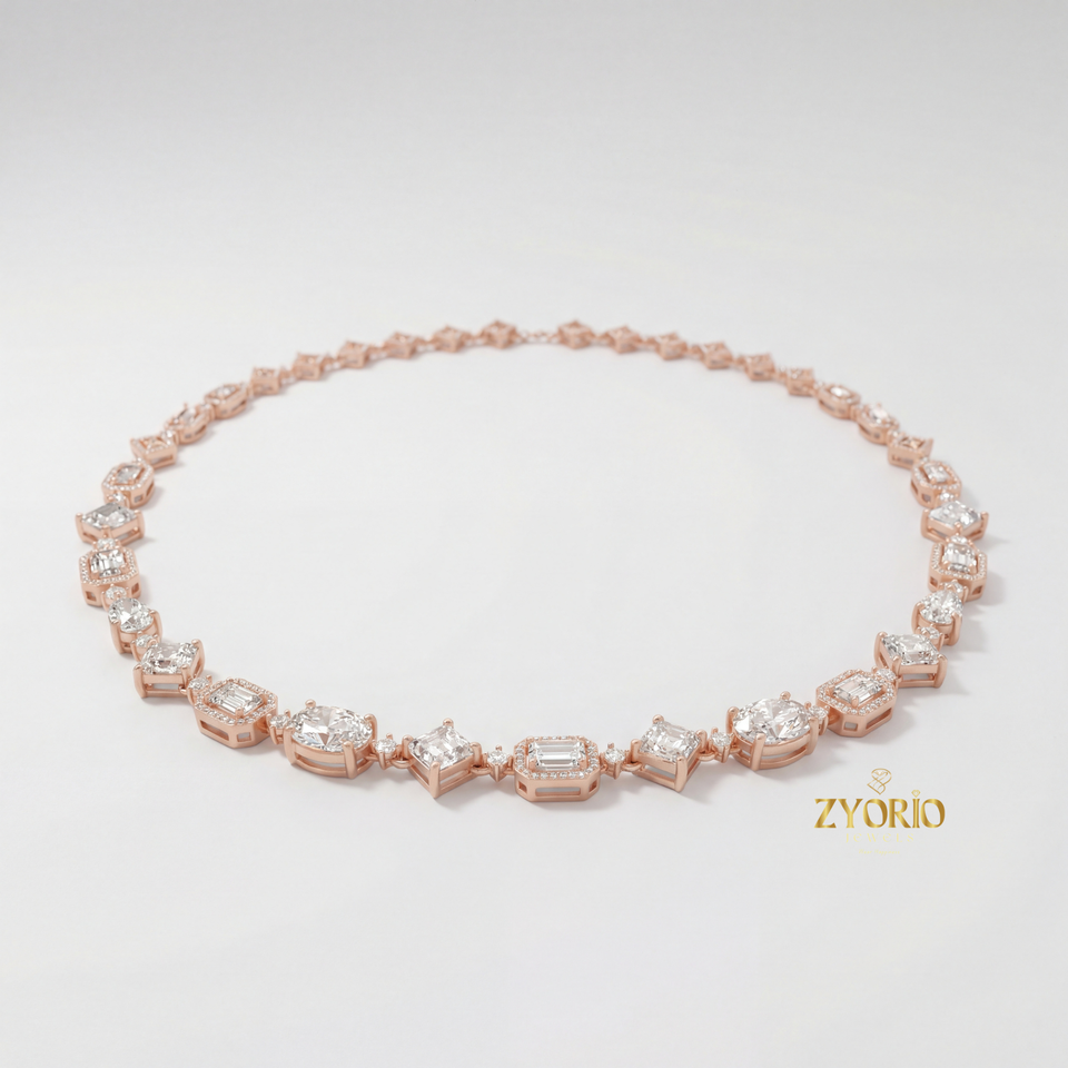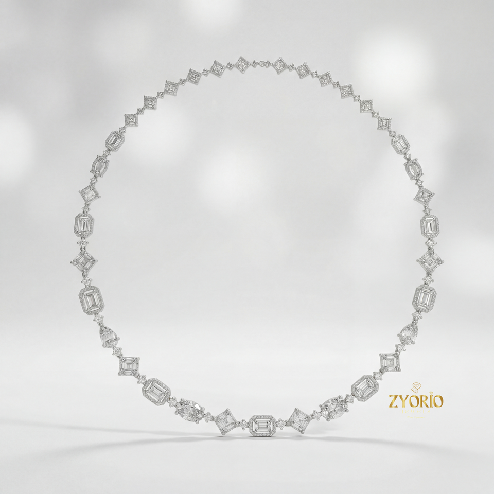สร้อยคอเพชรแล็บโกรว์ Zyorio Jewels ดีไซน์เชื่อมต่อ ประดับเงินแท้ 925 เหมาะสำหรับงานหมั้น สง่างาม ทันสมัย ประกายระยิบระยับเหนือกาลเวลา หรูหราสำหรับทุกวัน