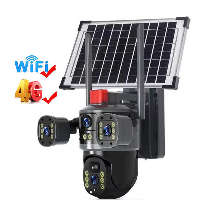 กล้องวงจรปิด Real 2 Lens 2 มุมมอง 8MP 4G ซิมการ์ด พลังงานแสงอาทิตย์ กล้องวงจรปิดภายนอกอาคาร 360 PTZ IP CCTV ไร้สาย WIFI กล้องรักษาความปลอดภัย