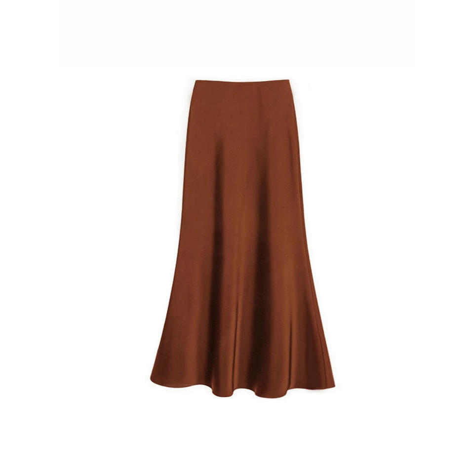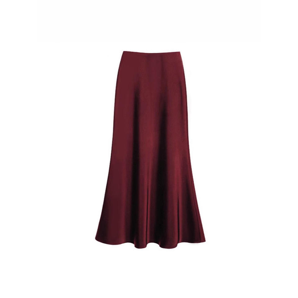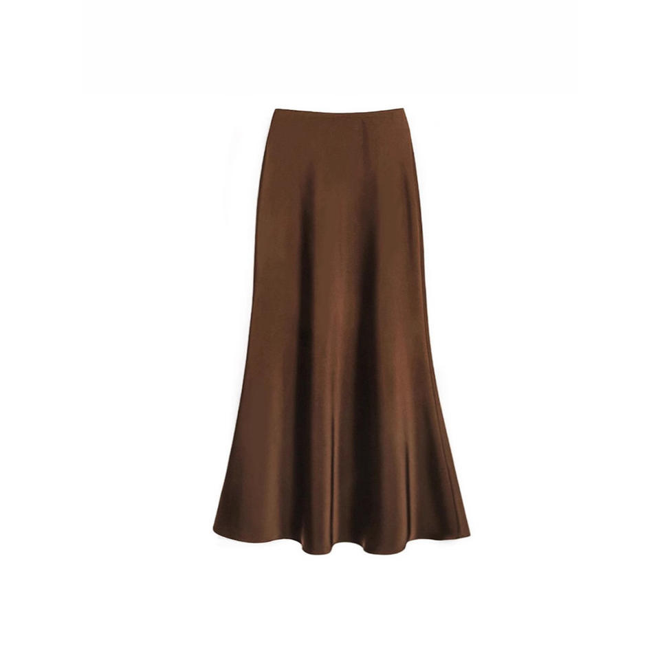 法式隐形拉链松紧腰醋酸缎面垂感半身裙女高腰包臀鱼尾裙a字长裙