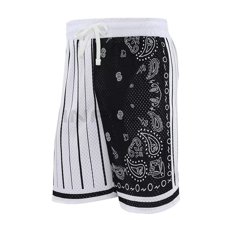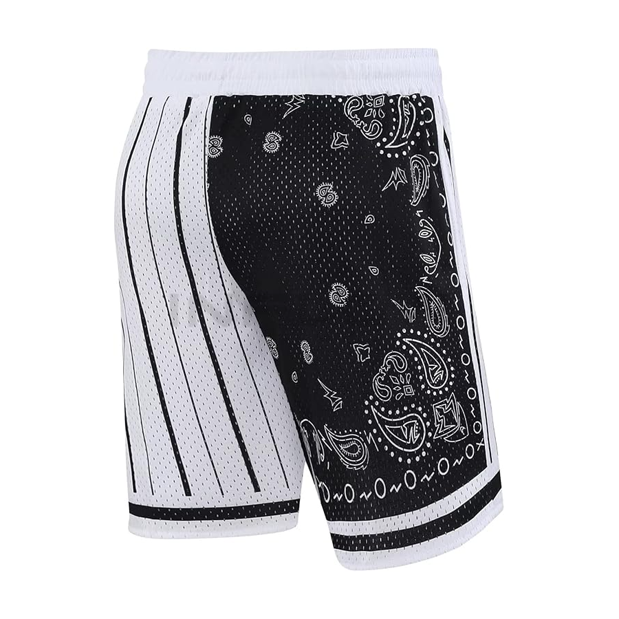 กางเกงขาสั้นตาข่ายสำหรับผู้ชายกางเกงบาสเก็ตบอลผ้ายืดพิมพ์ DTG 100% โพลีเอสเตอร์5นิ้วตามสั่ง
