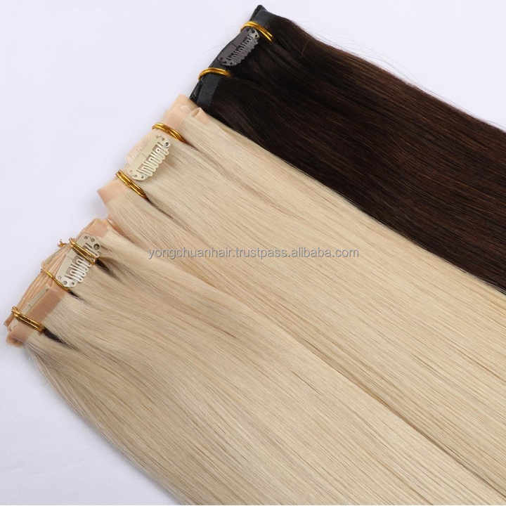 ผมมนุษย์แท้แบบคลิปหนีบผมแบบอินเดียเป็นลอนแบบตรงลูกไม้ PU ของชาวรัสเซียดูแลร่างกาย