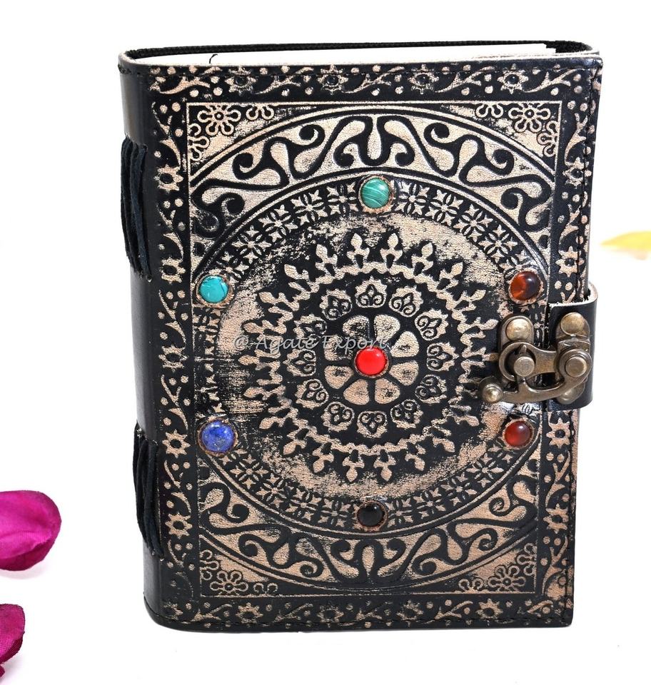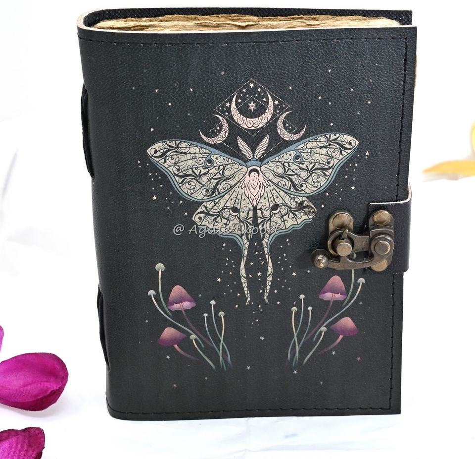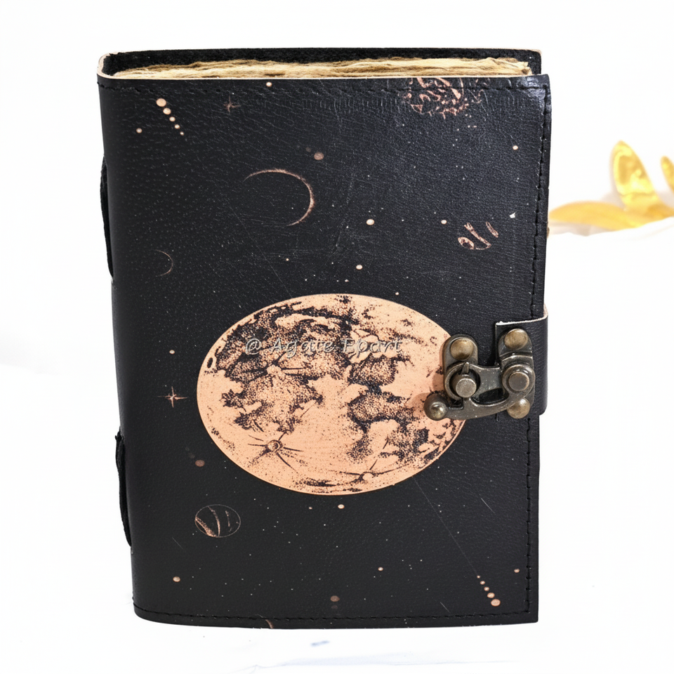วารสารหนังสีดำอาเกตพร้อมล็อคคุณภาพสูงสมุดบันทึกระยะพระจันทร์เต็มดวงทำด้วยมือด้วยการออกแบบดวงจันทร์ท้องฟ้า