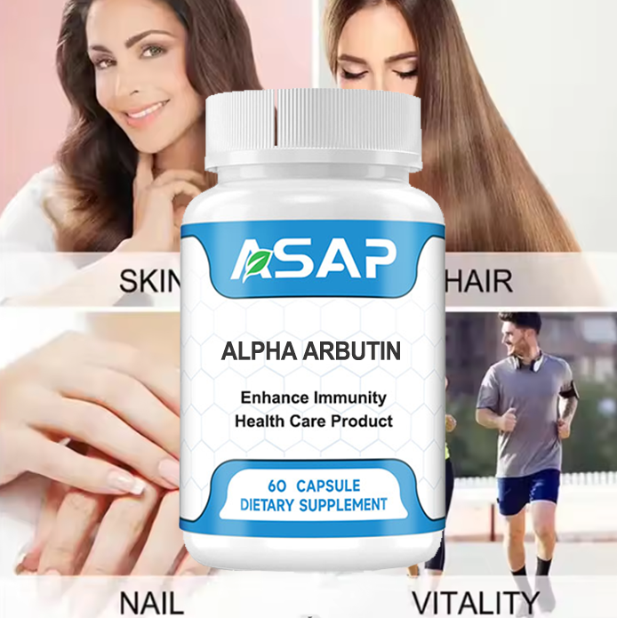 แคปซูลสารสกัดคอลลาเจนเกรดอาหาร แอสเอพี ผสมอัลฟ่าอาร์บูติน 60 เม็ด/ขวด สำหรับผิวขาวกระจ่างใส อาหารเสริมเพื่อสุขภาพสำหรับวัยรุ่น