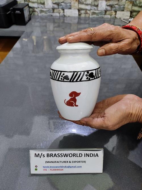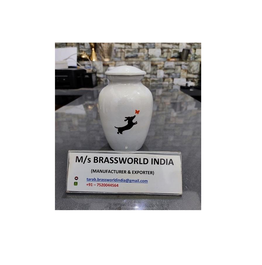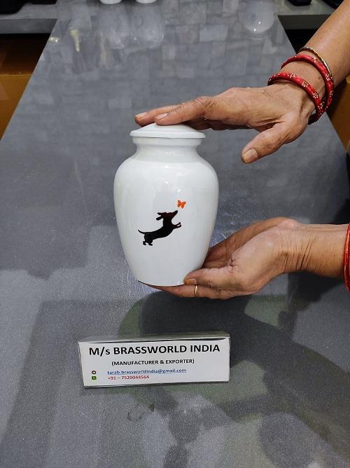 "aluminum hand painted dog catches butterfly pet cremation urn funeral supplies