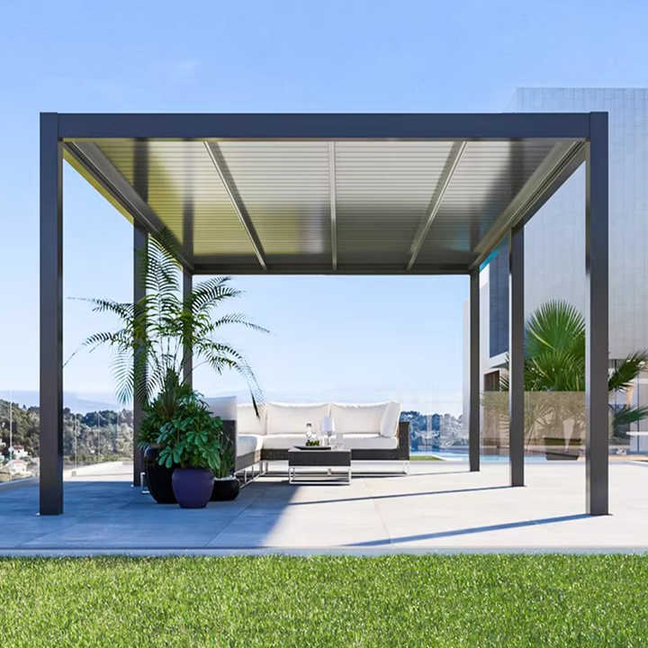สไตล์:เพอร์โกลาหรูหราพร้อมบานเกล็ดสำหรับใช้งานกลางแจ้ง