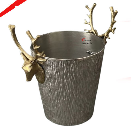 ถังน้ำแข็งเก็บความเย็นไวน์ทำจากอลูมิเนียมทำจากโลหะมีด้ามจับดีไซน์รูปกวางสำหรับร้านอาหารโรงแรมและบาร์