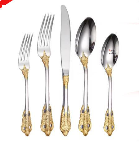ชุดช้อนส้อมสแตนเลสเคลือบเงิน ดีไซน์สวยงาม สำหรับโรงแรม ร้านอาหาร และบาร์
