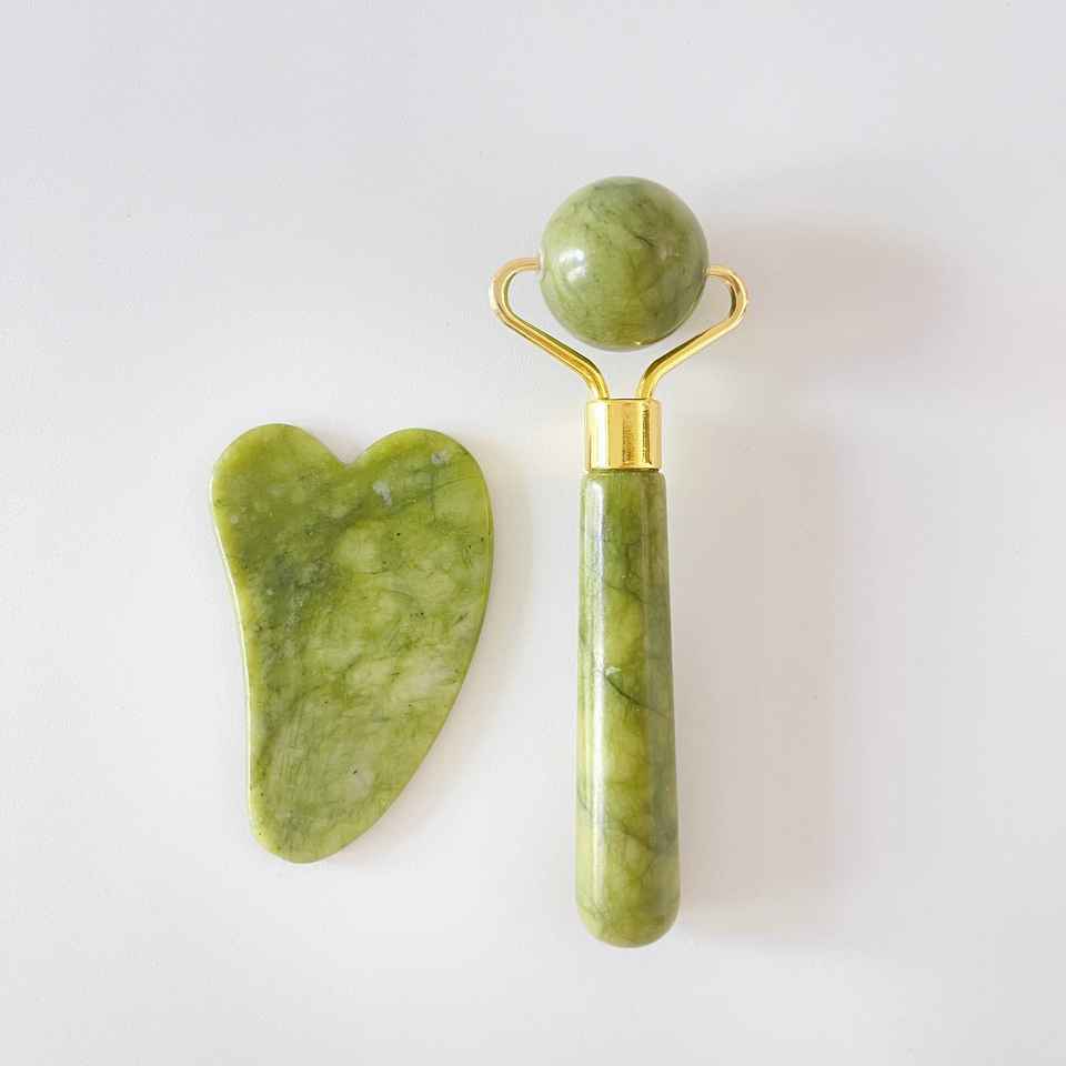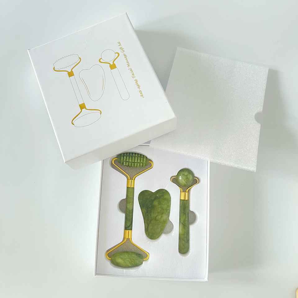 ชื่อผลิตภัณฑ์:ชุดเครื่องนวดหน้าแบบกำหนดเองลูกกลิ้งหยกสีเขียวกัวซา