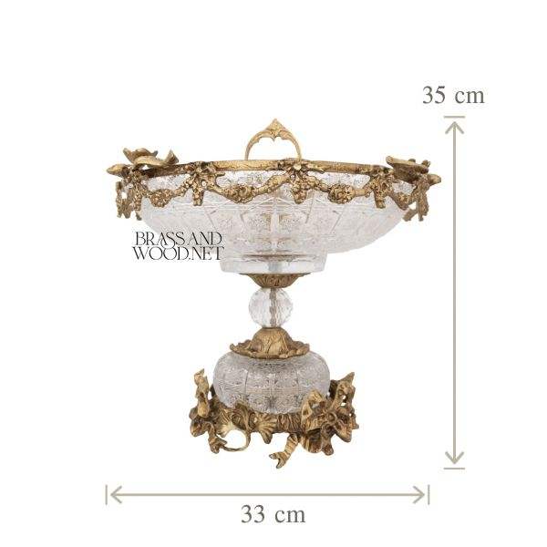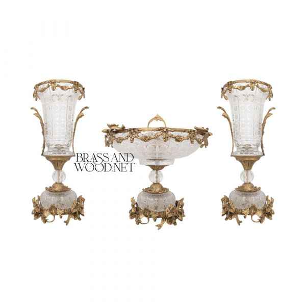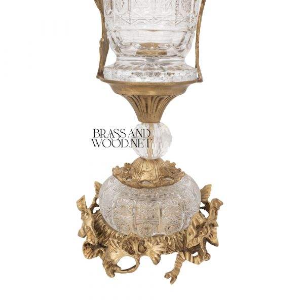 ชุดตกแต่งคริสตัลและทองเหลืองโบราณพร้อมการแกะสลักอย่างละเอียดแบบคลาสสิกแกนกลางและโกศสำหรับการตกแต่งภายในแบบวินเทจที่หรูหรา