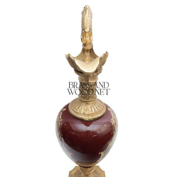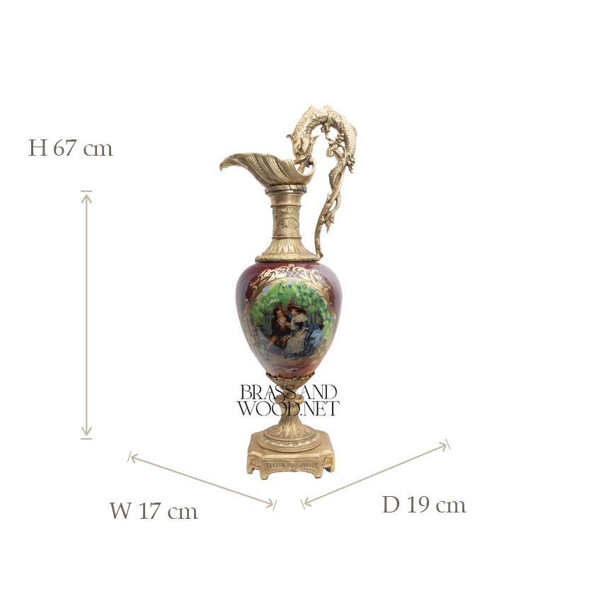 เหยือกทองเหลืองโบราณและพอร์ซเลนตกแต่งด้วยมืองานศิลปะวาดด้วยมือหรูหราที่จับสีทองและการออกแบบวินเทจที่หรูหรา