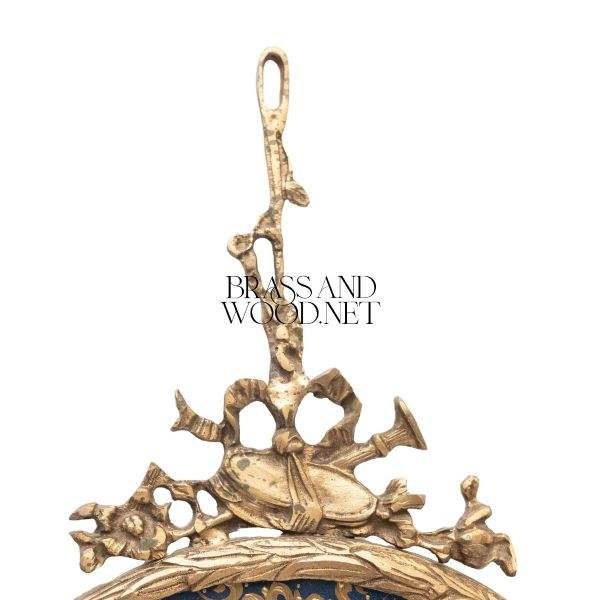 antique brass round wall frame with ornate golden decoration featuring hand painted rustic countryside village