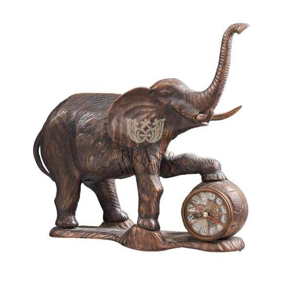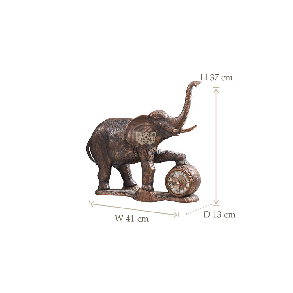 รูปปั้นช้างทองเหลืองสีน้ำตาลโบราณ พร้อมนาฬิกาตกแต่ง ดีไซน์งานฝีมือศิลปะ สง่างาม สไตล์วินเทจ ของตกแต่งบ้าน