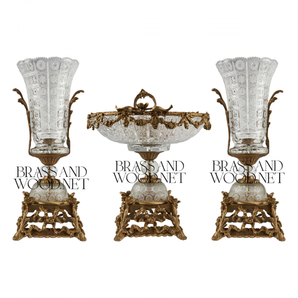 antique crystal and brass centerpiece set with ornate vases handcrafted luxury vintage decoration elegant home accessory