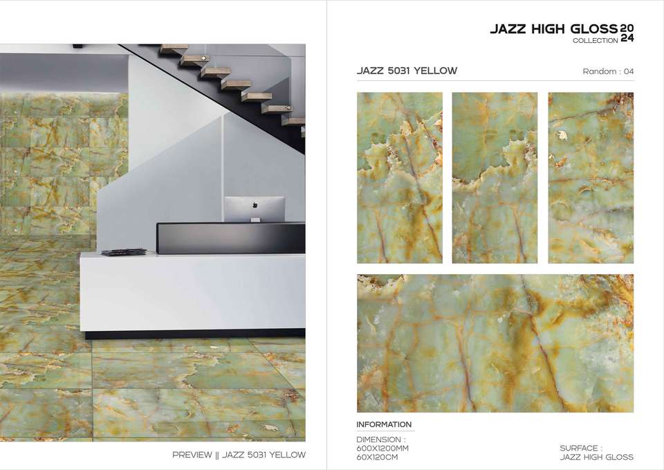สถาปนิกนิยมกระเบื้องพอร์ซเลนแจ๊สผิวมันเงา ขนาด 60x120 ซม. 600x1200 มม. 24x48 นิ้ว สำหรับผนังภายในที่สวยงาม