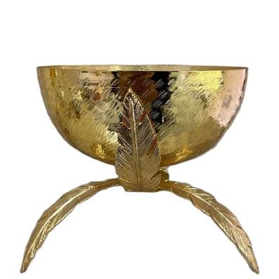 ชามเสิร์ฟทรงกลมโลหะสีทองดีไซน์น่าดึงดูด,ชามเสิร์ฟพร้อมขาตั้งรูปใบไม้สีทองใช้สำหรับใส่สลัดอุปกรณ์เครื่องครัว