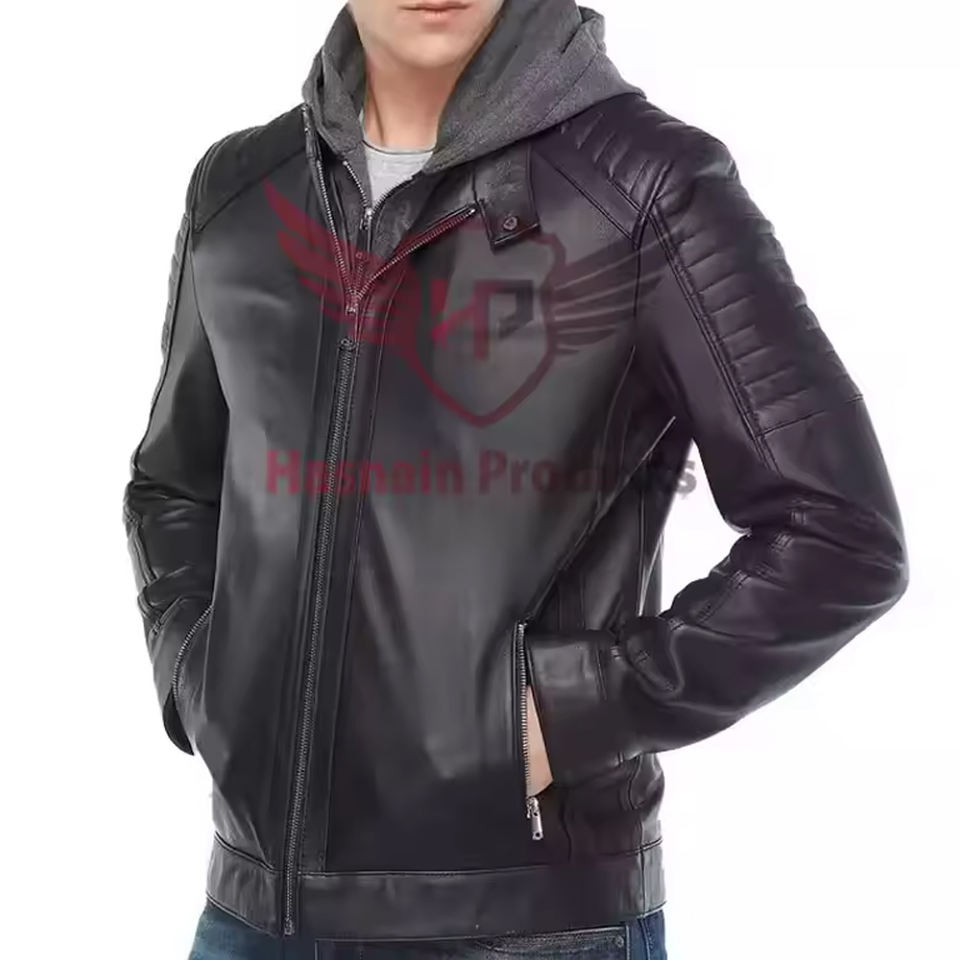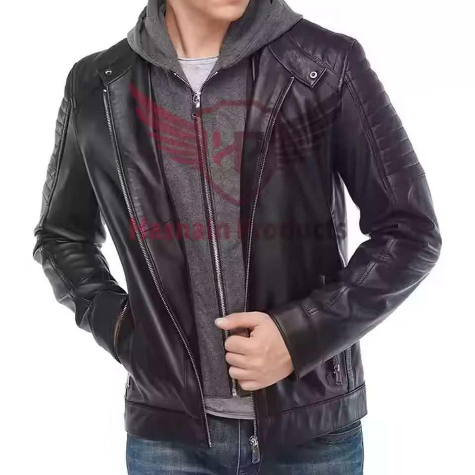 แจ็กเก็ตมอเตอร์ไซค์ของผู้ชายเสื้อคลุมมีฮู้ดสำหรับฤดูใบไม้ร่วงและฤดูหนาว