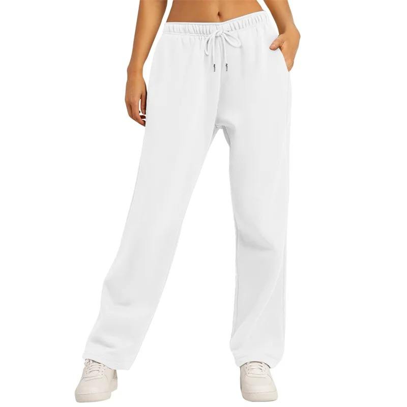 กางเกงวอร์มสีพื้นสำหรับผู้หญิง ฤดูใบไม้ร่วง ฤดูหนาว กางเกงลำลองใส่ได้ทุกวัน กางเกงขากว้างทรงหลวมใส่สบาย มีเชือกผูกเอวสำหรับผู้หญิง